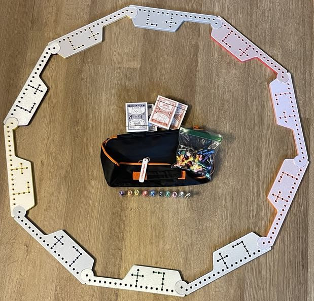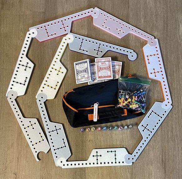 Experience the classic game of Pegs and Jokers in a whole new dimension with this beautifully crafted 3D printed board game set. Perfect for 2-10 players, this versatile game features interlocking board sections that create a stunning geometric pattern when assembled. The set includes 50 colorful pegs in 10 vibrant colors, with matching board sections for easy player identification. Each board piece is precisely designed with clear hole patterns for smooth gameplay. The game requires up to 4 standard card decks (included) and provides hours of strategic entertainment for both families and friend groups. Suitable for ages 5 and up, this game combines luck and strategy in a way that keeps players of all skill levels engaged. The compact design makes it ideal for both home use and travel. The durable construction ensures long-lasting enjoyment, while the included storage bag keeps all pieces organized. Whether you're new to Pegs and Jokers or a seasoned player, this set offers a premium gaming experience that's both visually appealing and functionally superior.