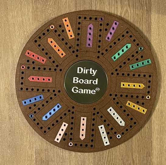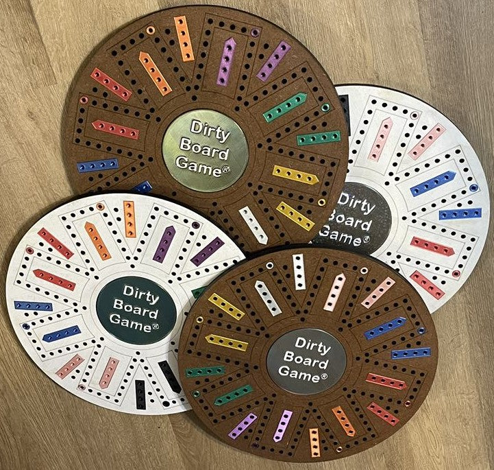 The 8 player Dirty Board Game® board is perfect for 4 teams of 2 or 2 teams of 4. This board allows for 2 - 8 individual players.