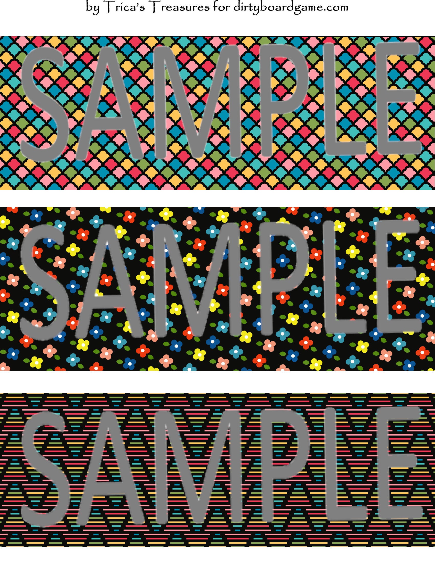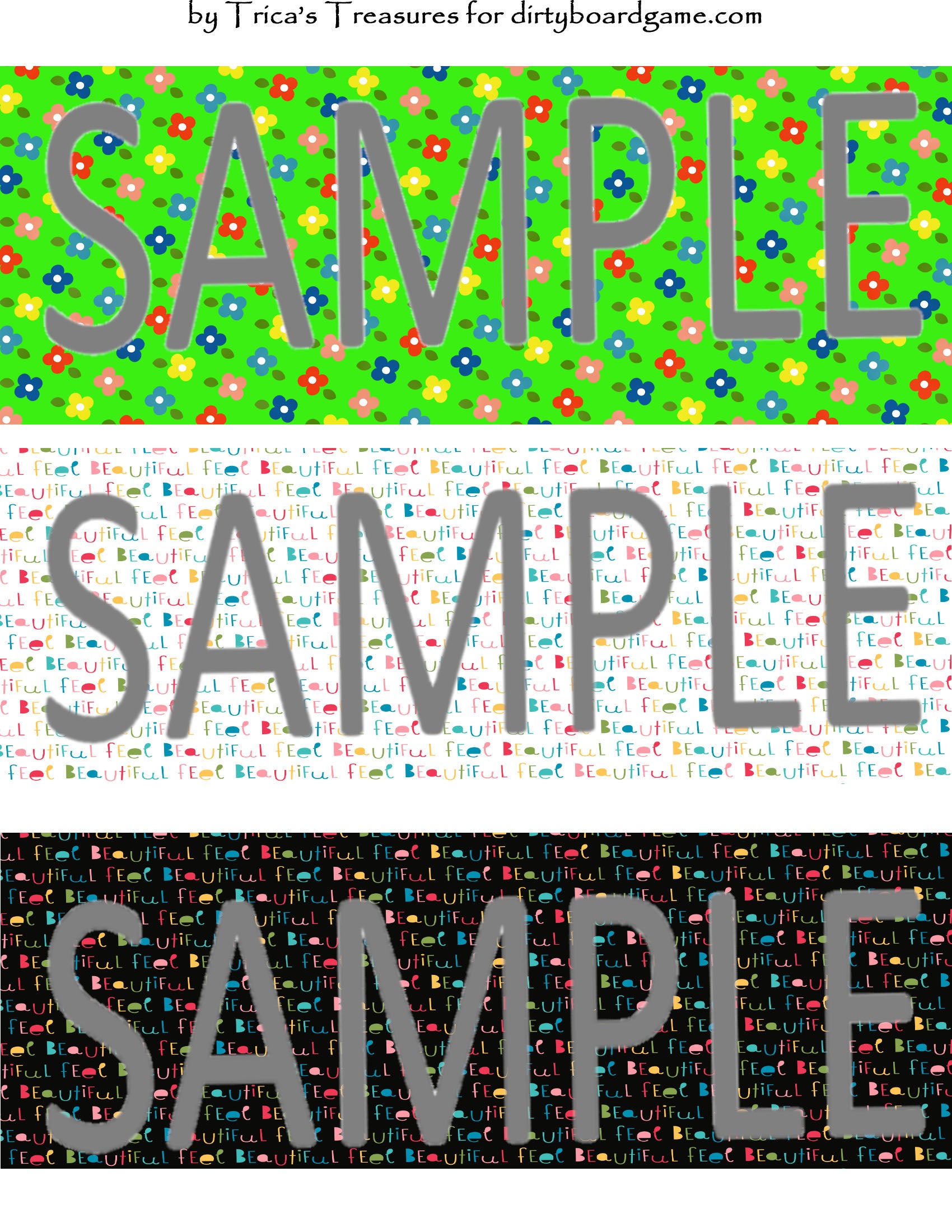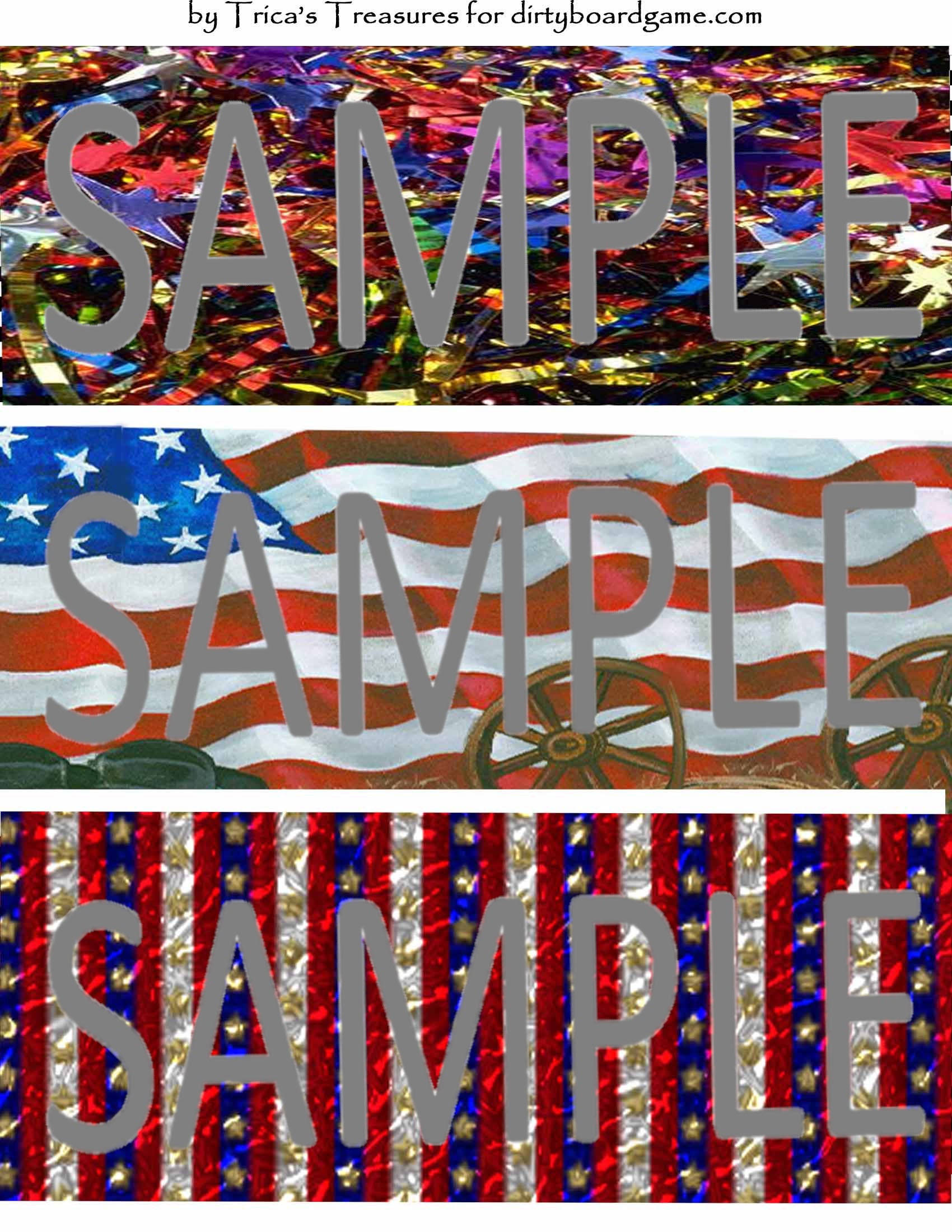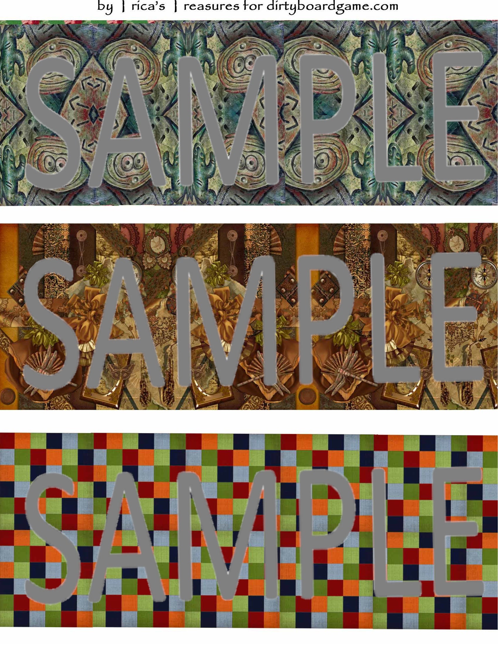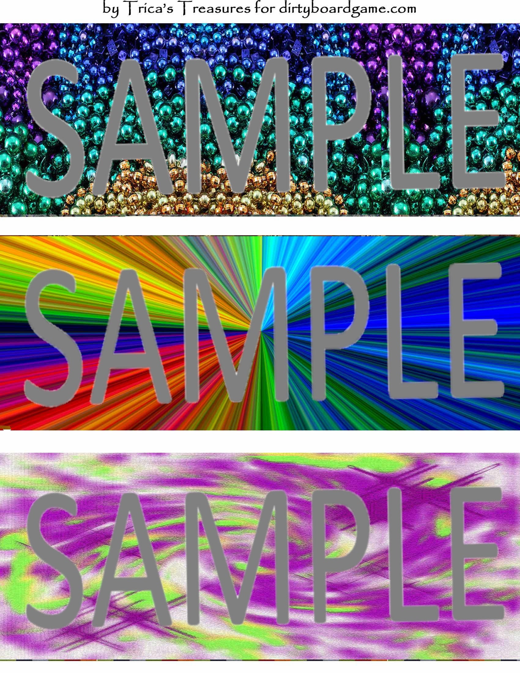 DirtyboardGame.com in collaboration with Trica's Treasures presents these choices of digital paper for making your own toppers. Download, print and cut. Attach the result to your favorite blank (or use heavy card stock) and create your own art for your toppers. Wear them, sell them, give them away - no restrictions.
