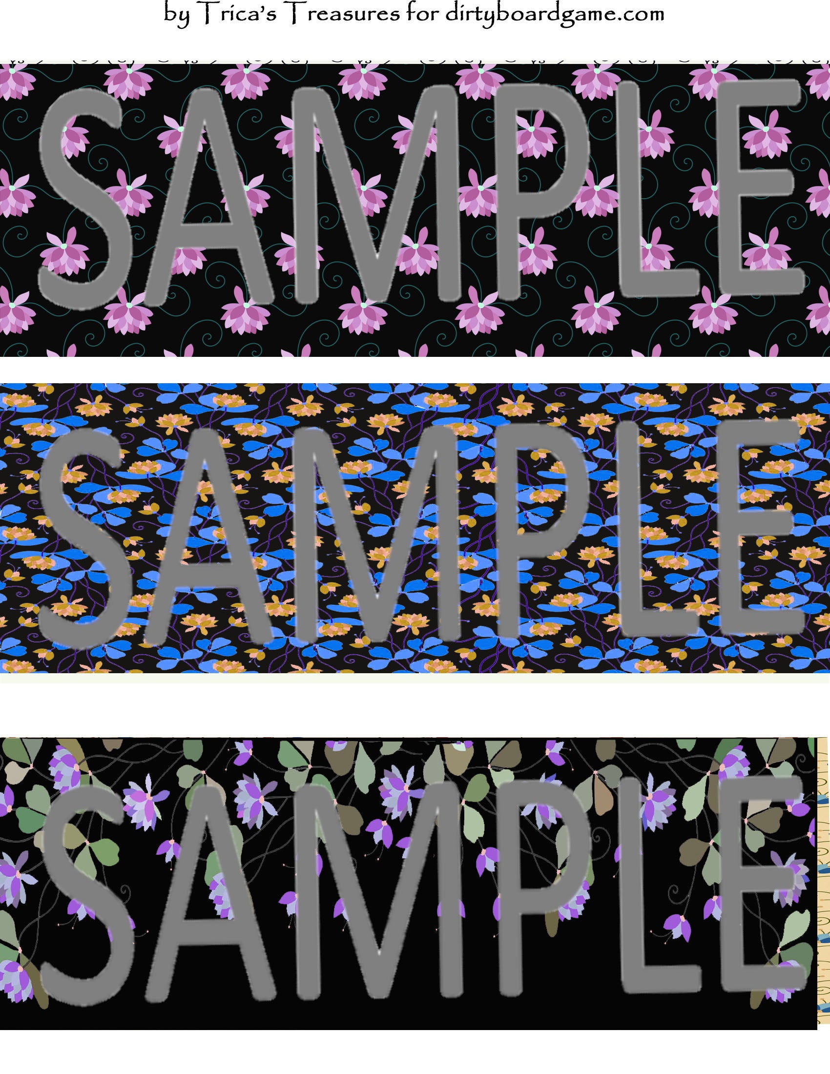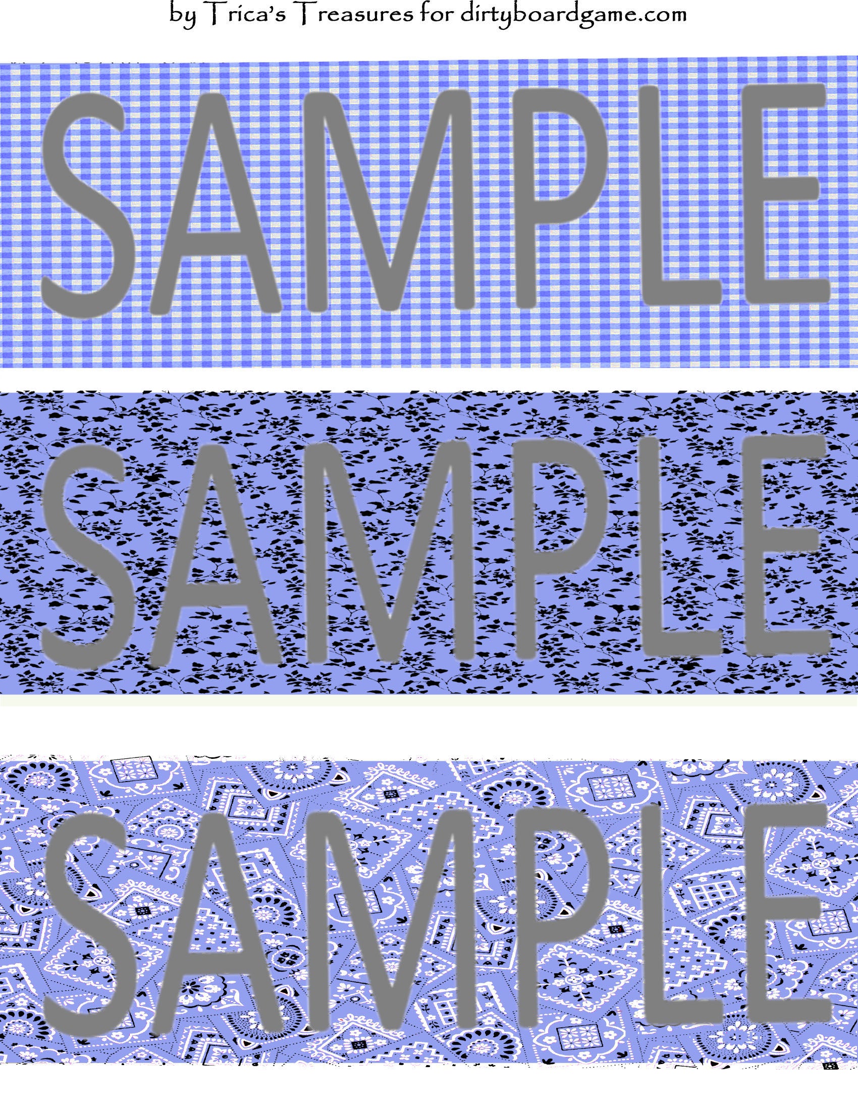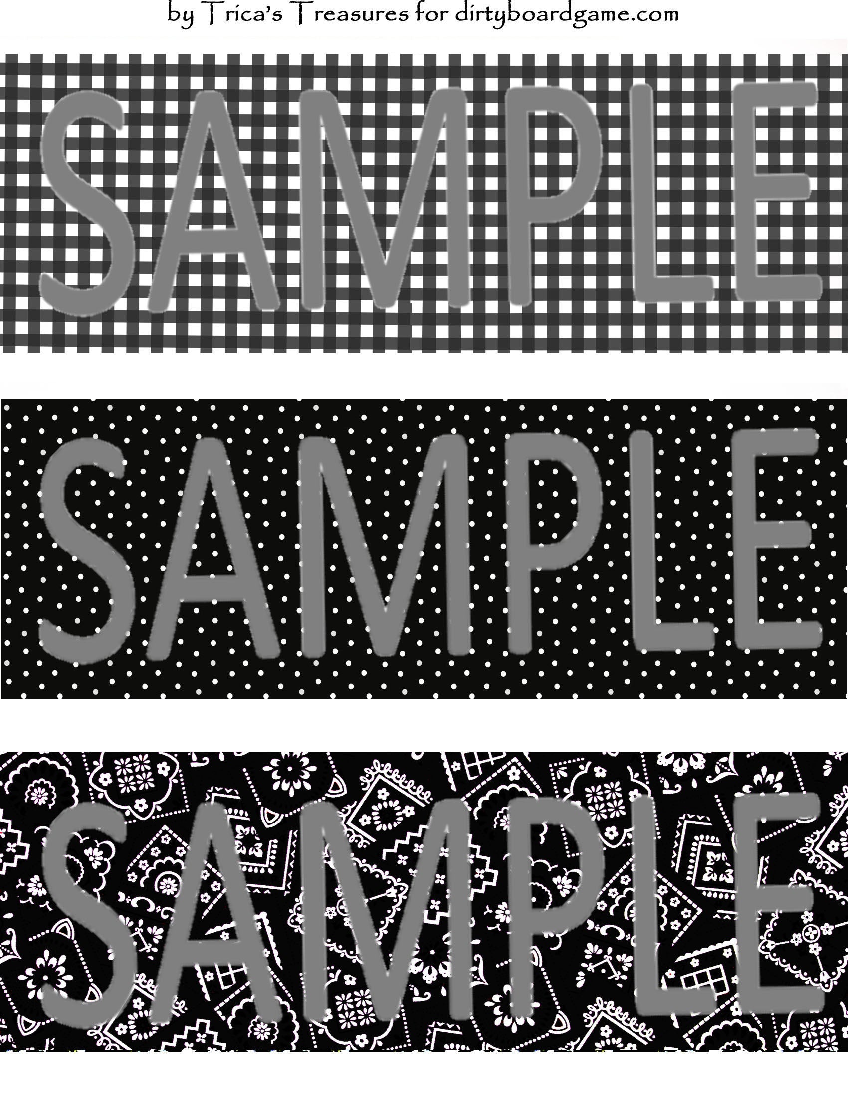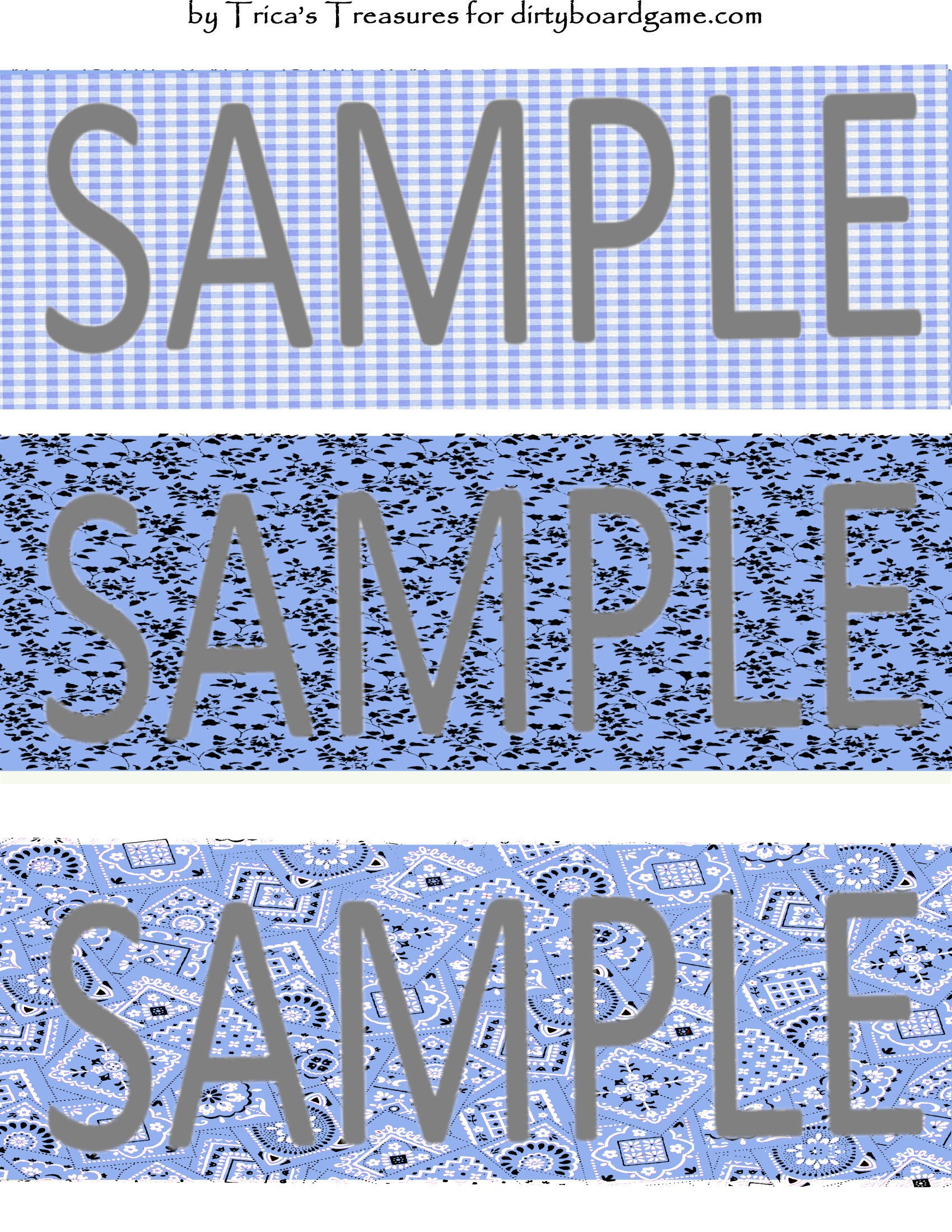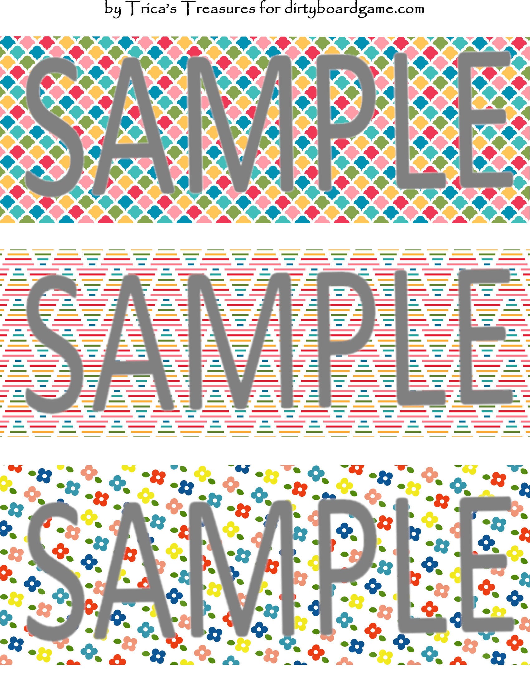 DirtyboardGame.com in collaboration with Trica's Treasures presents these choices of digital paper for making your own toppers. Download, print and cut. Attach the result to your favorite blank (or use heavy card stock) and create your own art for your toppers. Wear them, sell them, give them away - no restrictions.