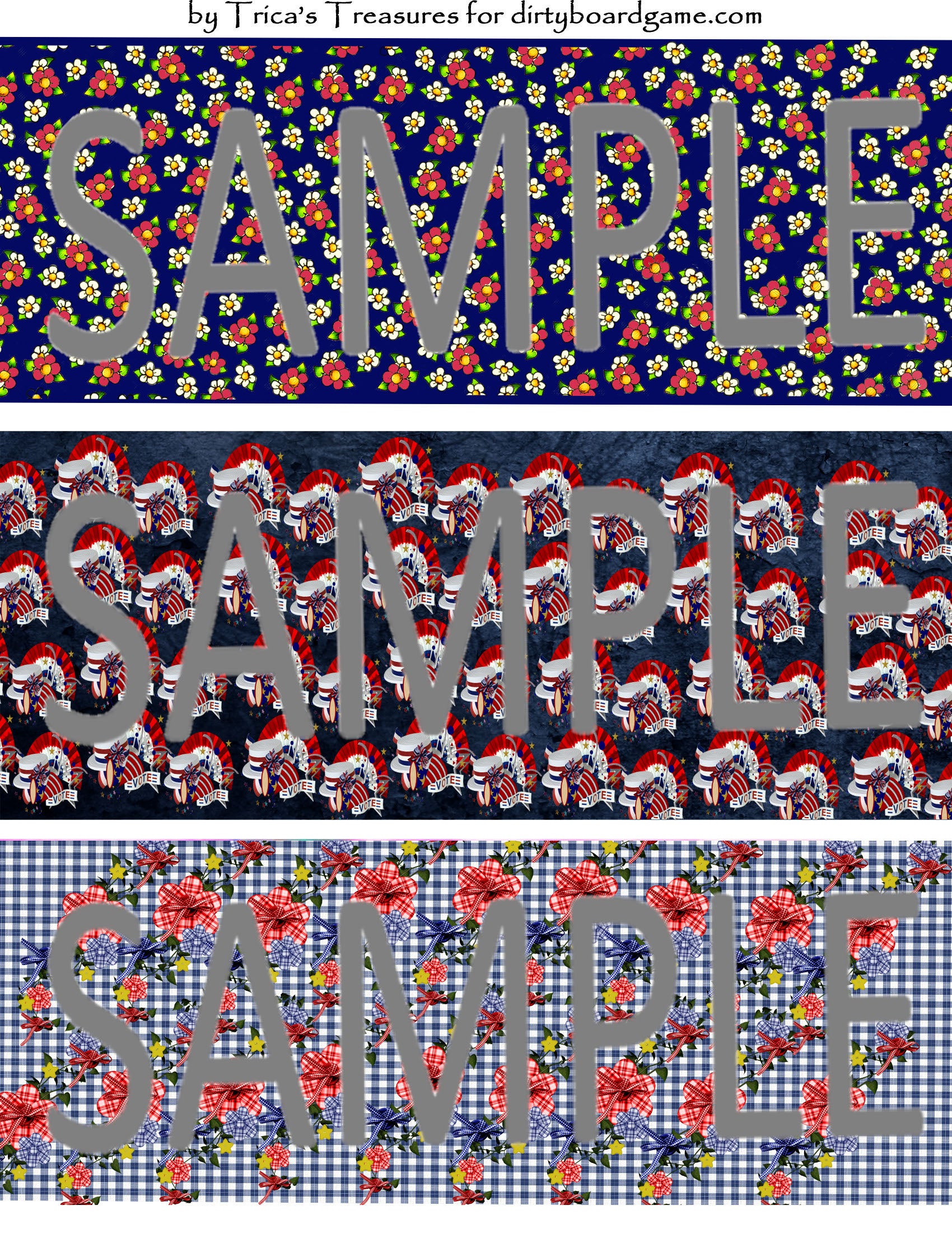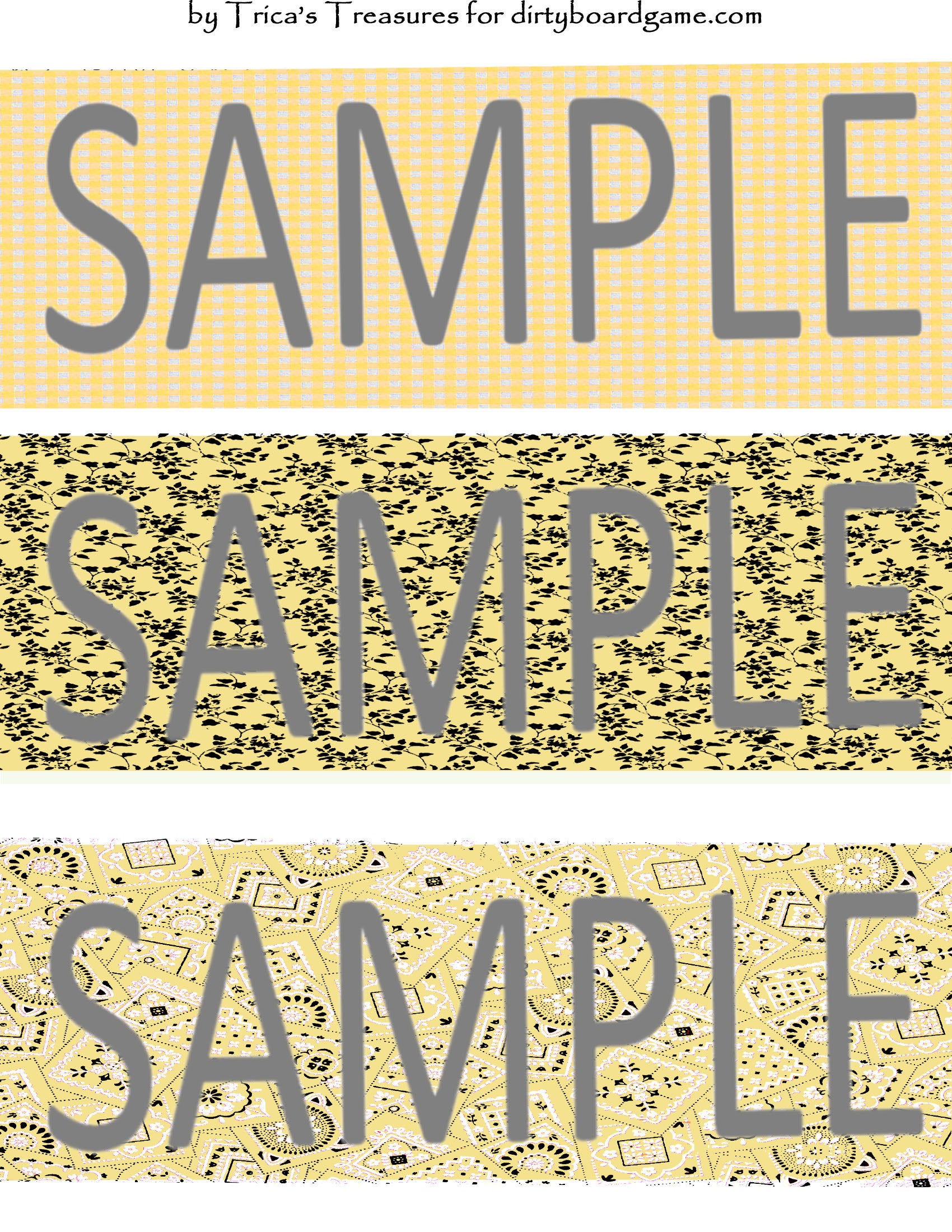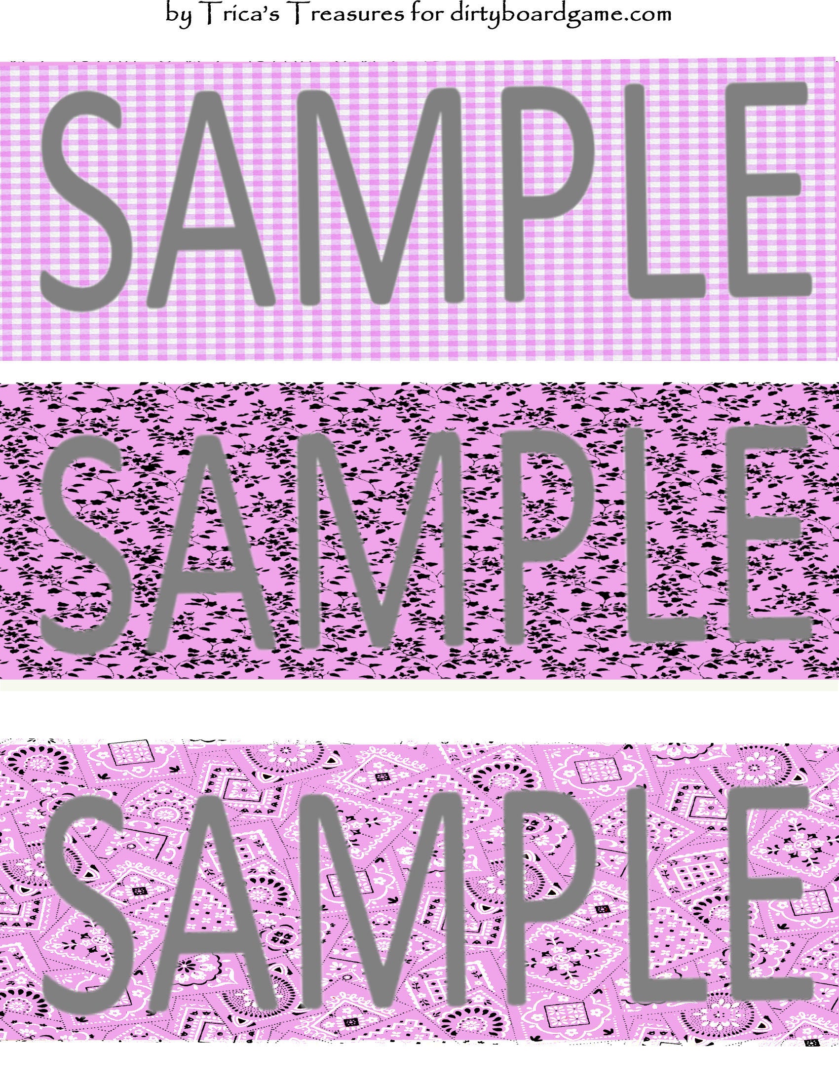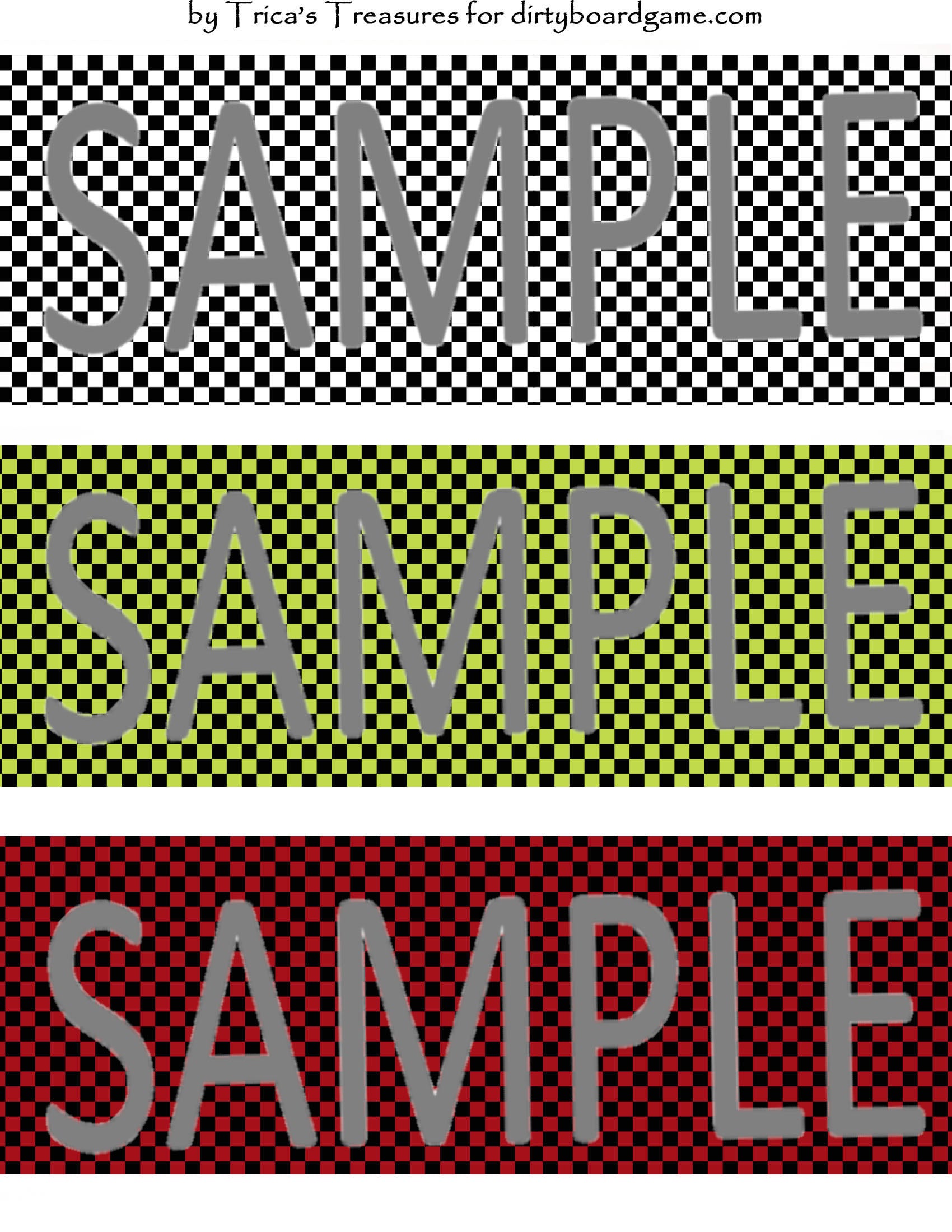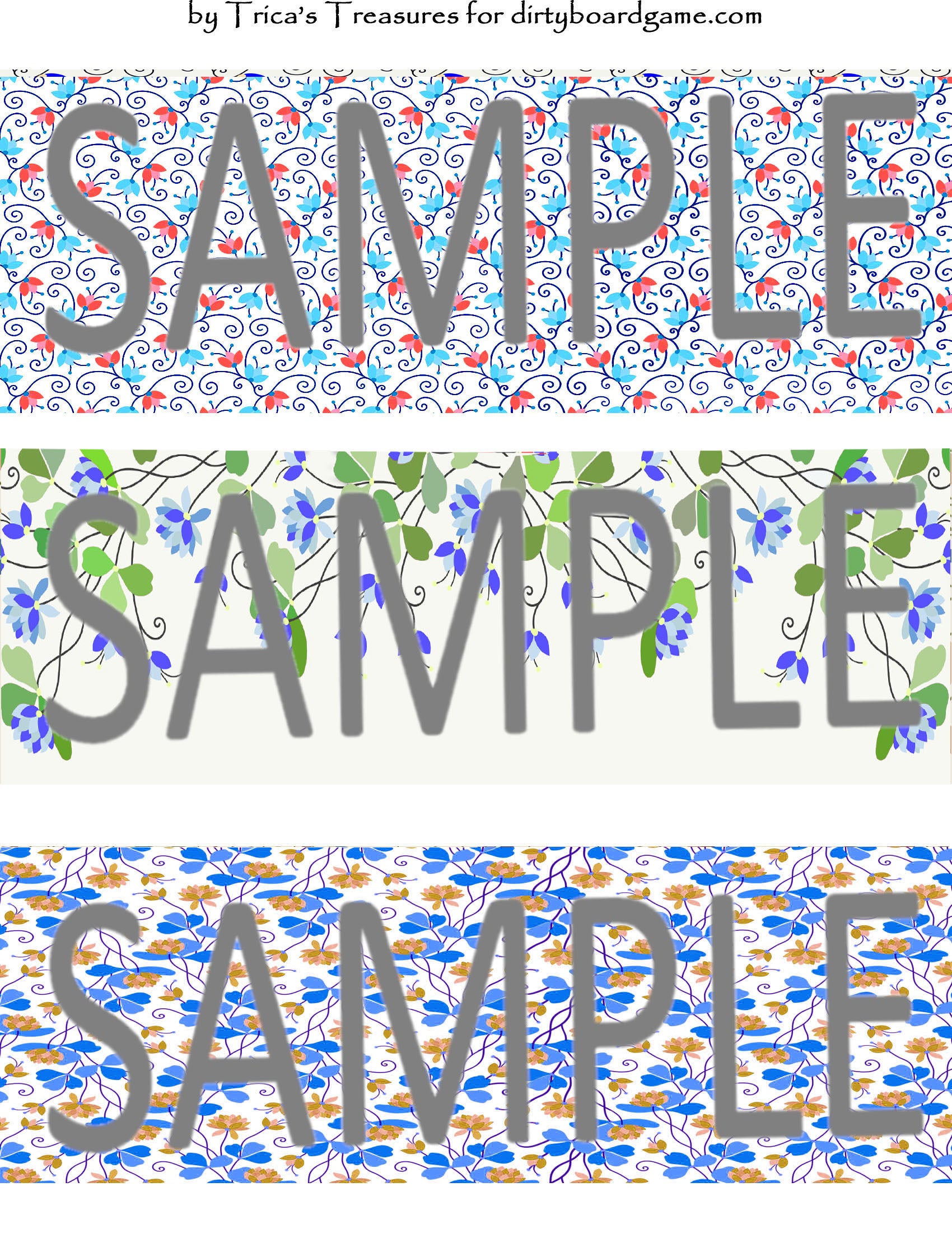 DirtyboardGame.com in collaboration with Trica's Treasures presents these choices of digital paper for making your own toppers. Download, print and cut. Attach the result to your favorite blank (or use heavy card stock) and create your own art for your toppers. Wear them, sell them, give them away - no restrictions.