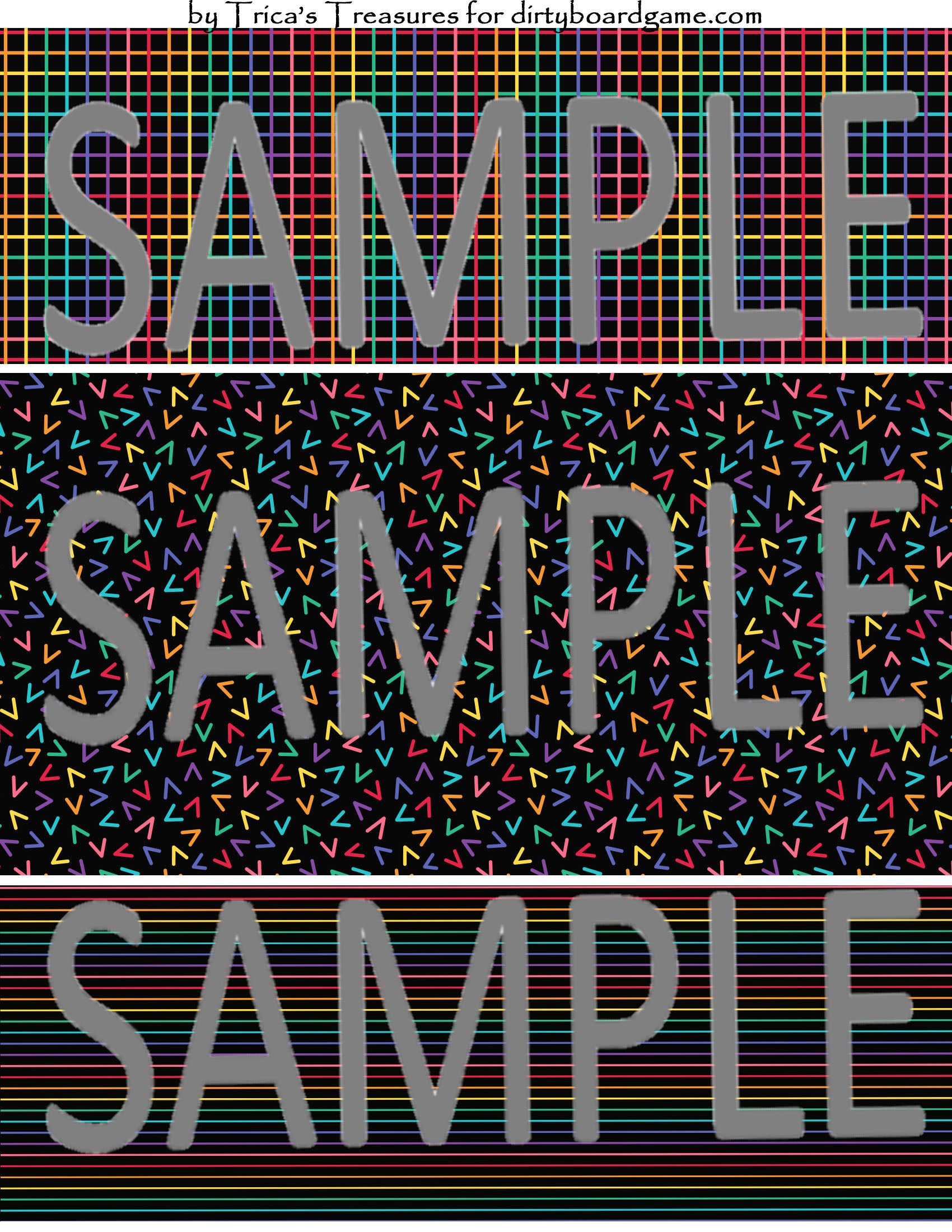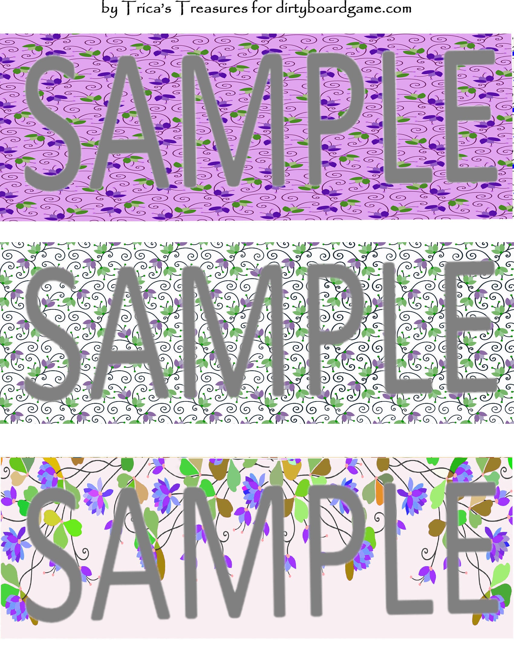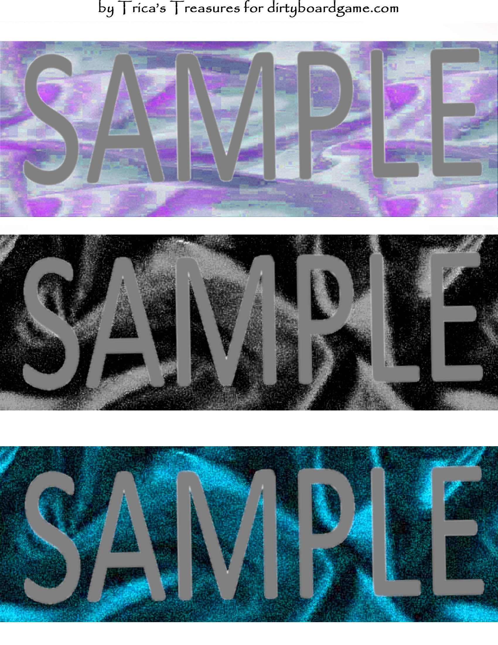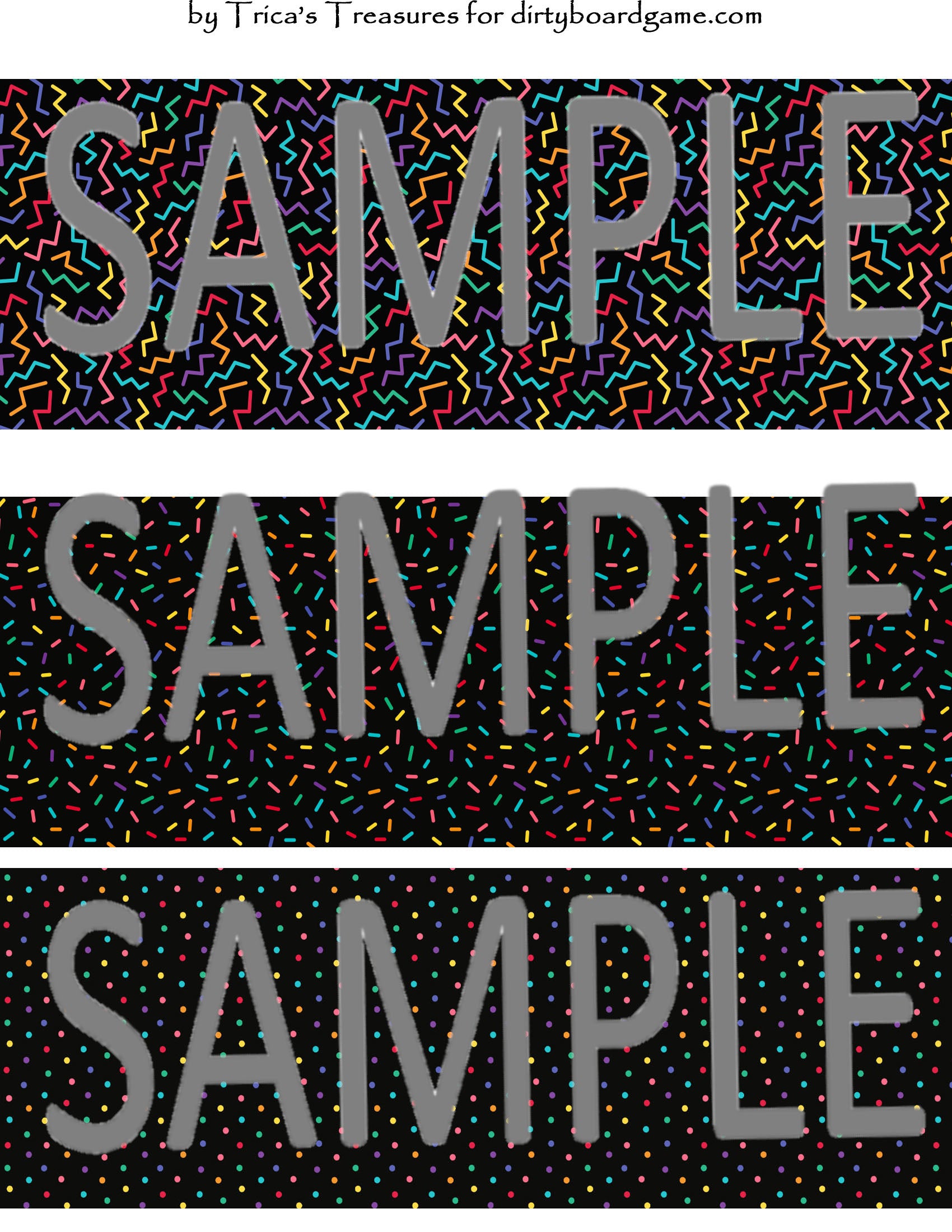 DirtyboardGame.com in collaboration with Trica's Treasures presents these choices of digital paper for making your own toppers. Download, print and cut. Attach the result to your favorite blank (or use heavy card stock) and create your own art for your toppers. Wear them, sell them, give them away - no restrictions.