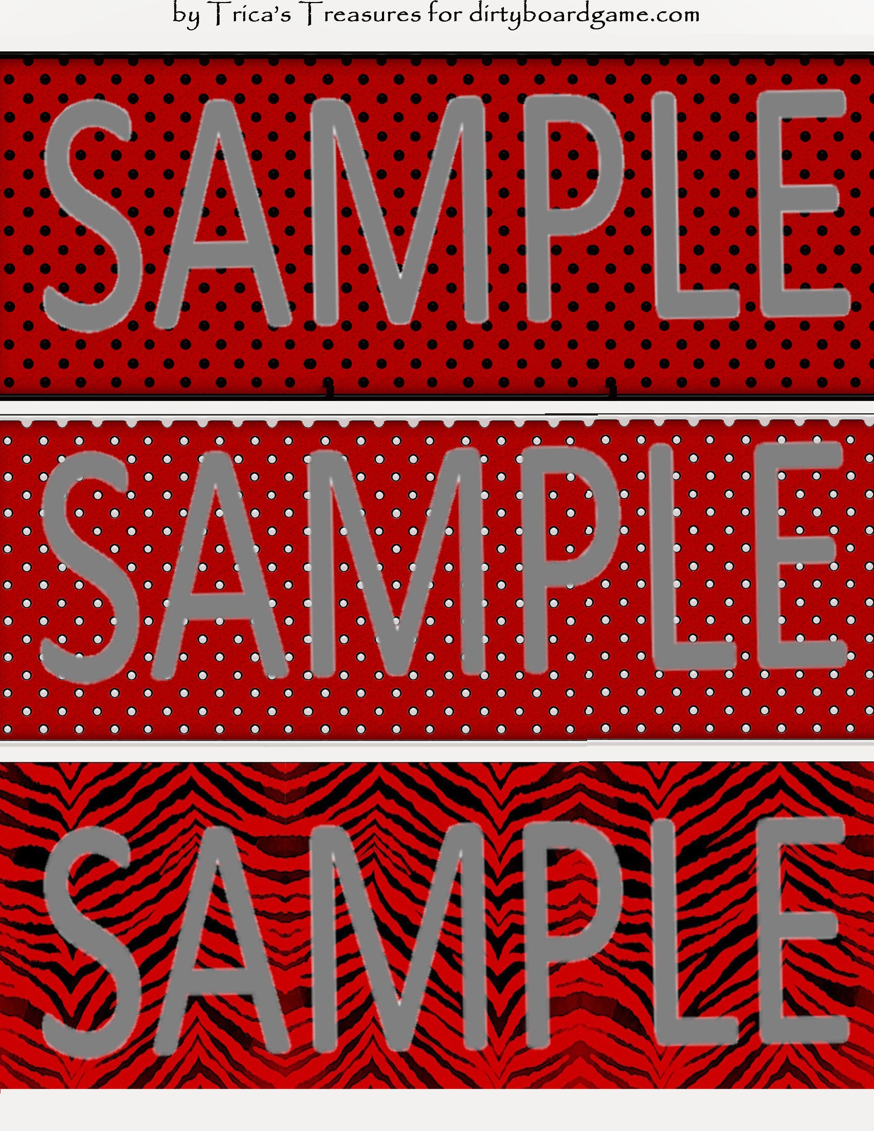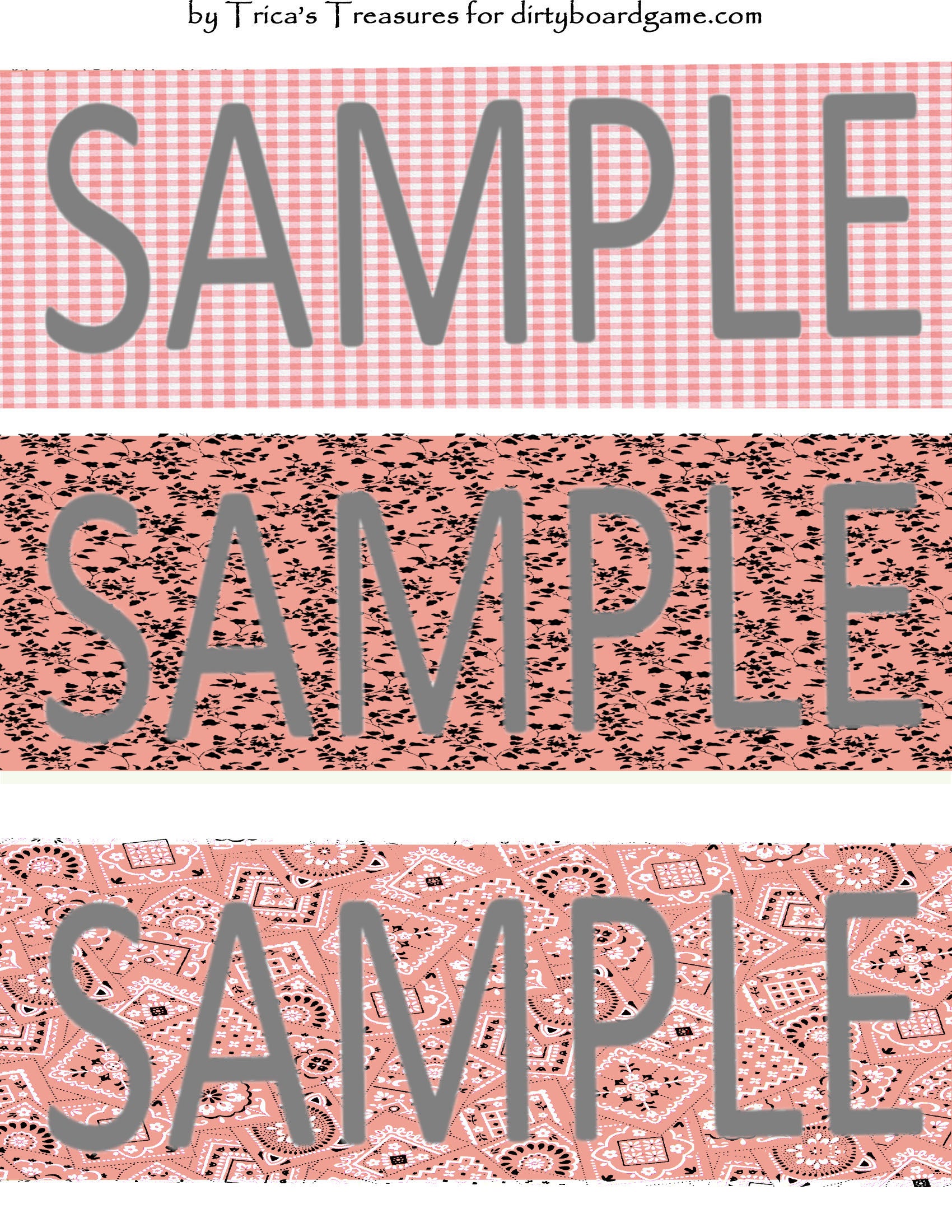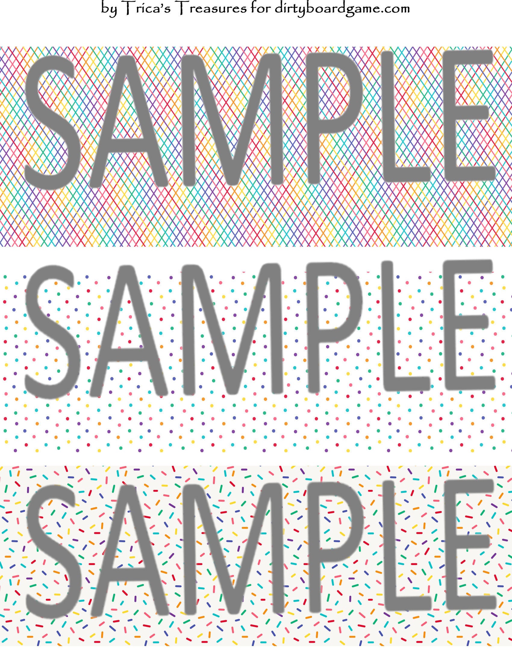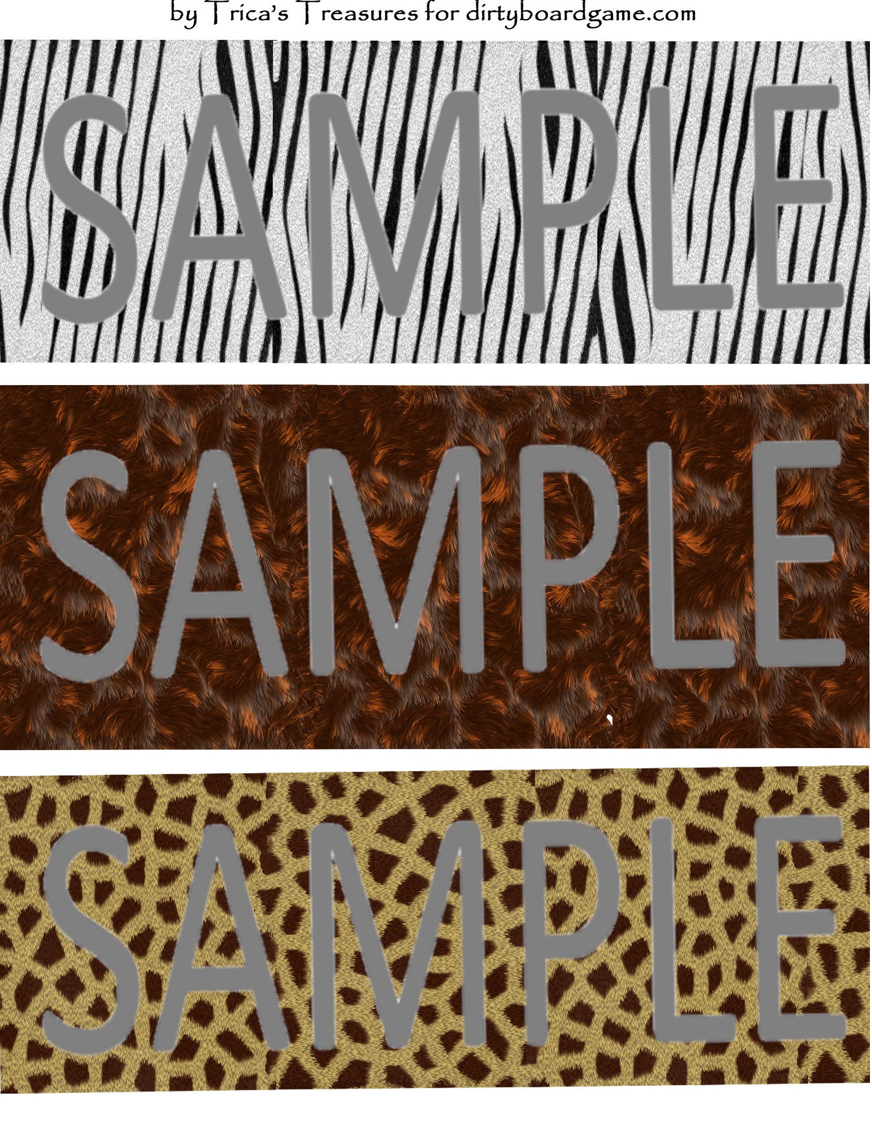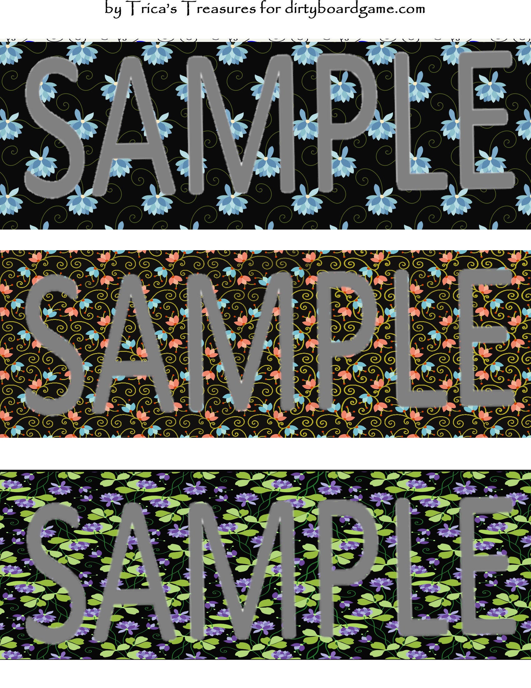 DirtyboardGame.com in collaboration with Trica's Treasures presents these choices of digital paper for making your own toppers. Download, print and cut. Attach the result to your favorite blank (or use heavy card stock) and create your own art for your toppers. Wear them, sell them, give them away - no restrictions.