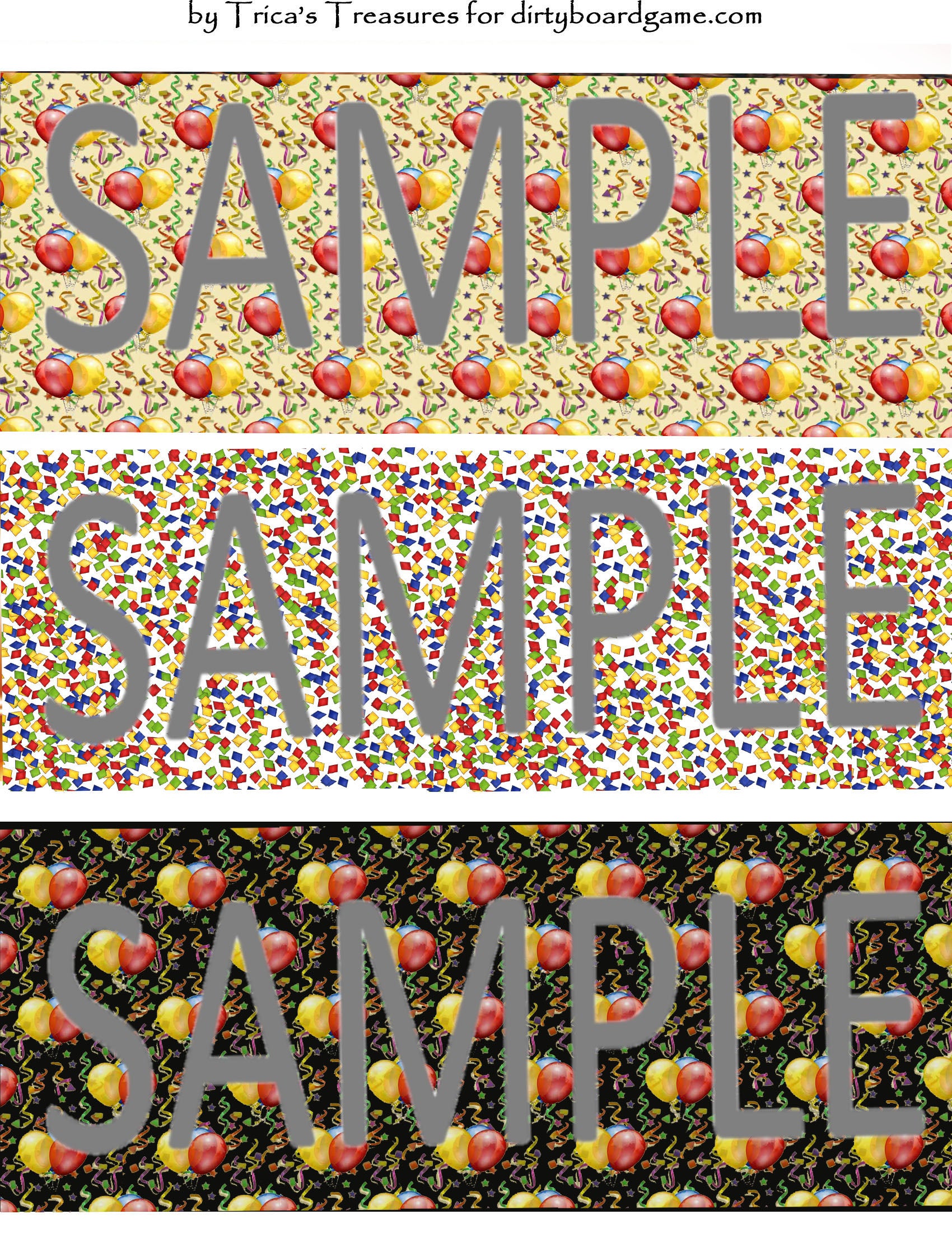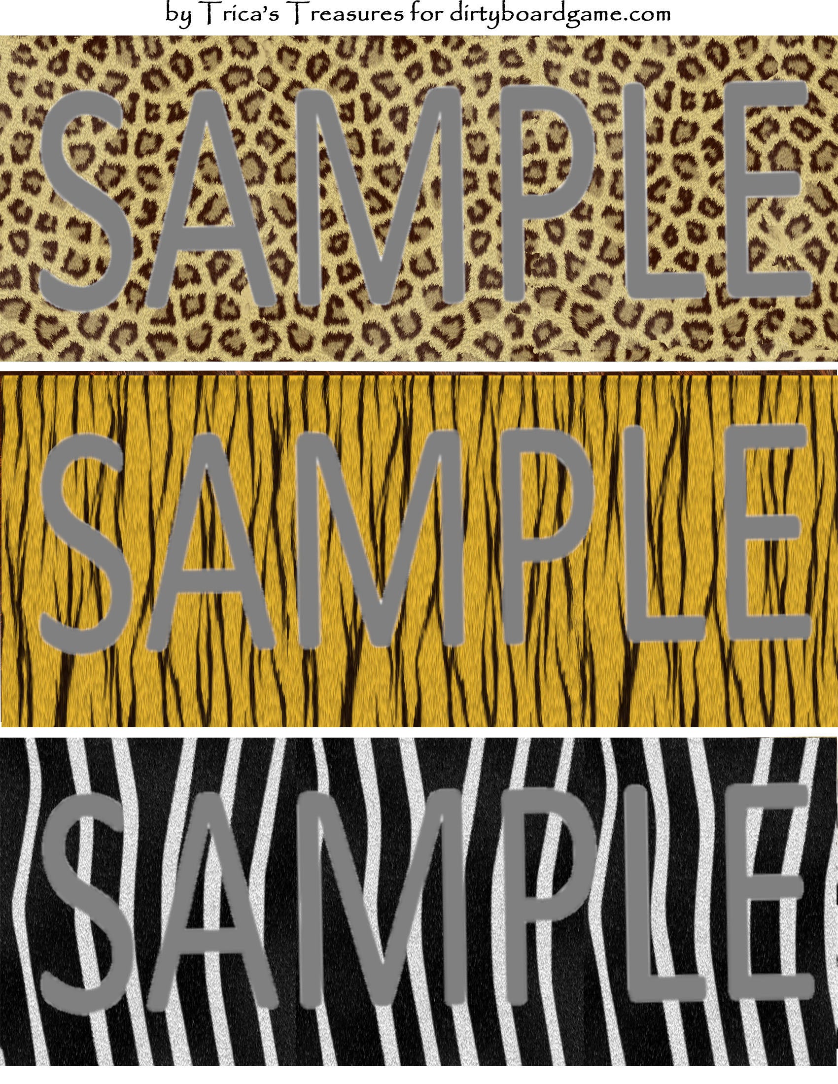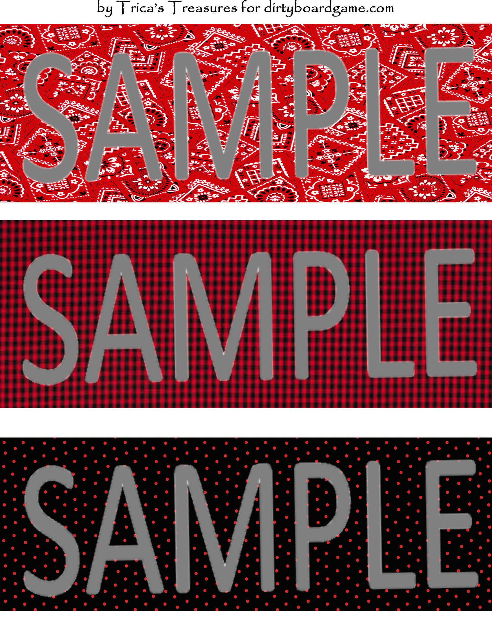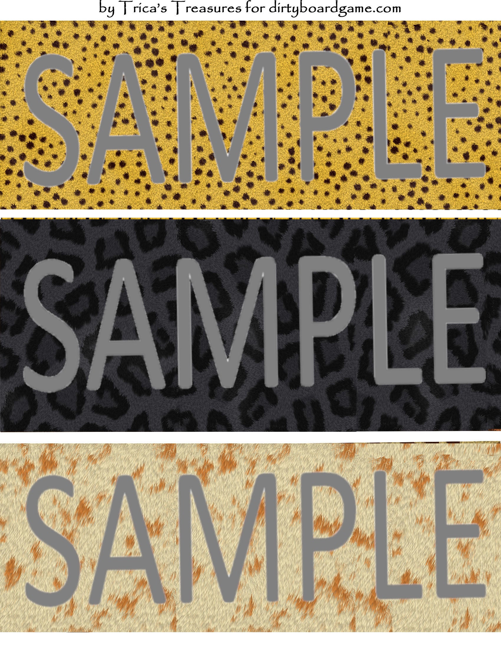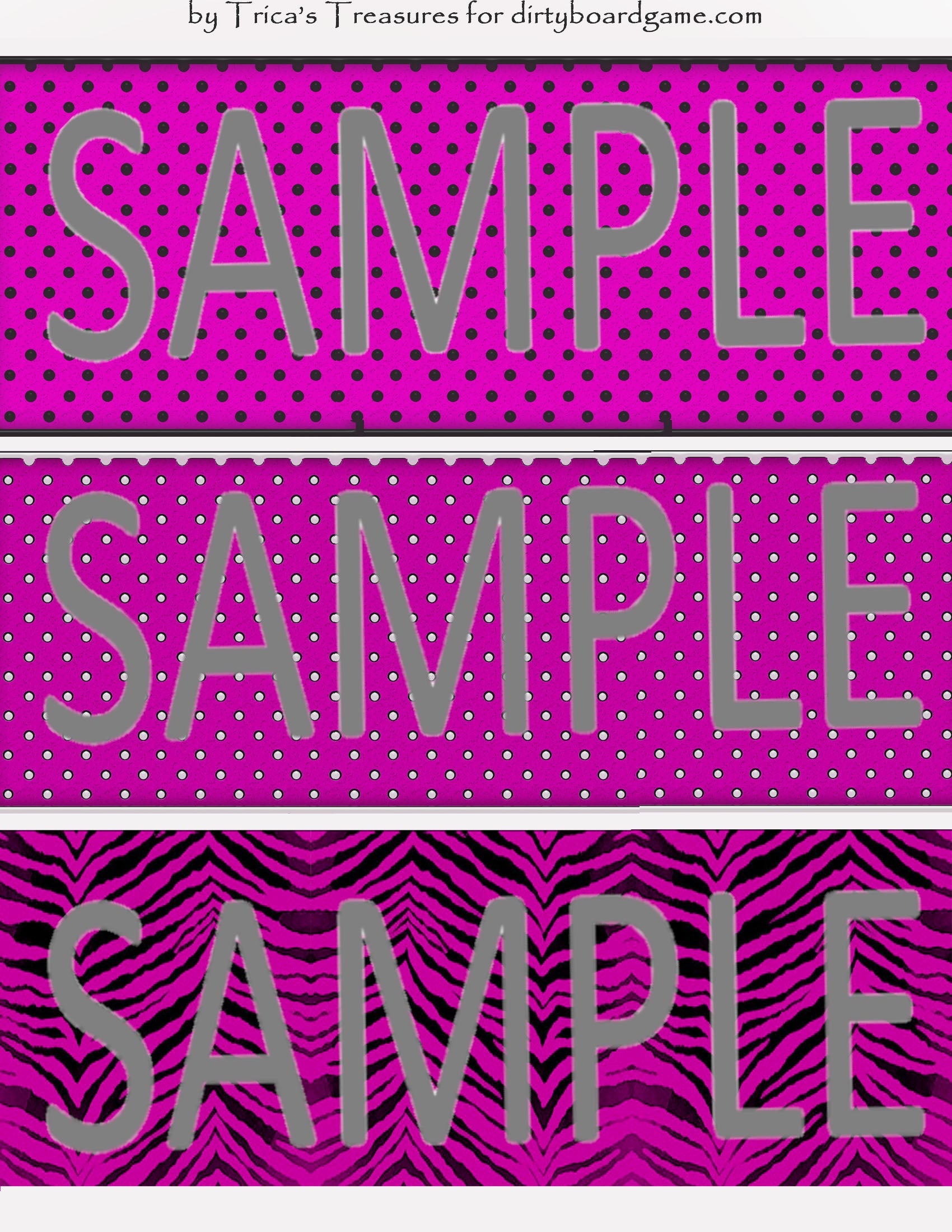 DirtyboardGame.com in collaboration with Trica's Treasures presents these choices of digital paper for making your own toppers. Download, print and cut. Attach the result to your favorite blank (or use heavy card stock) and create your own art for your toppers. Wear them, sell them, give them away - no restrictions.
