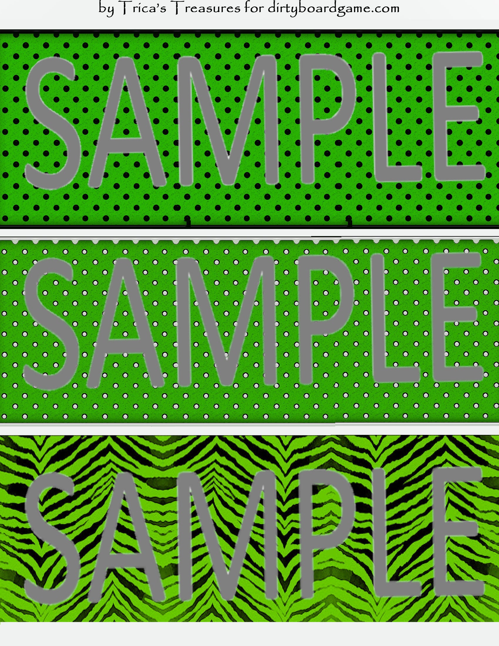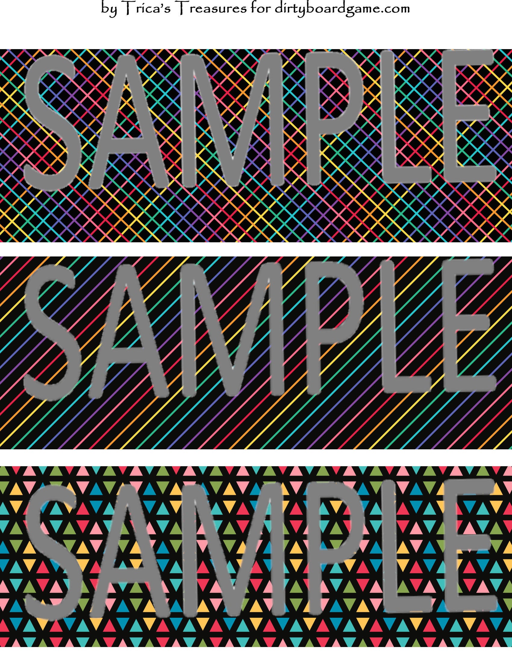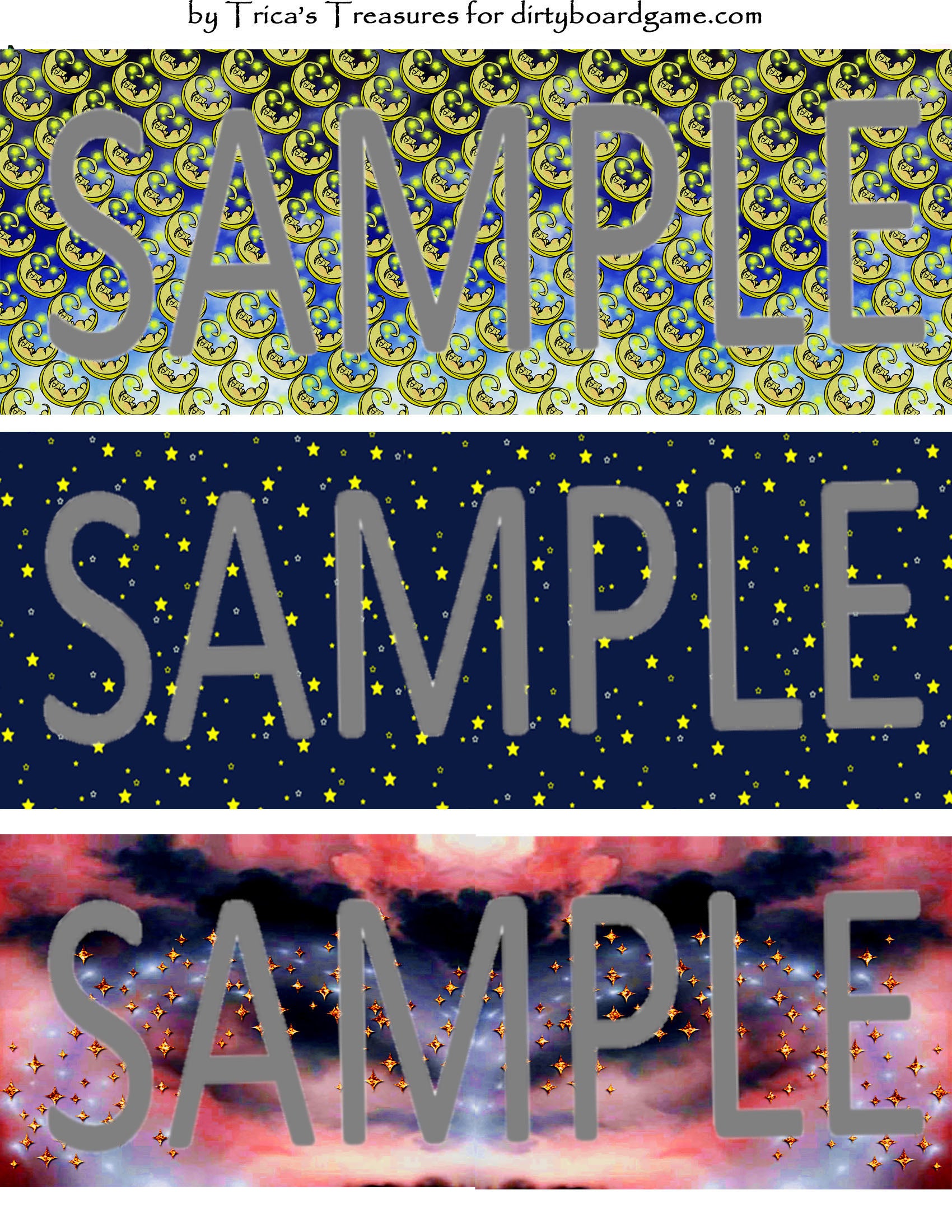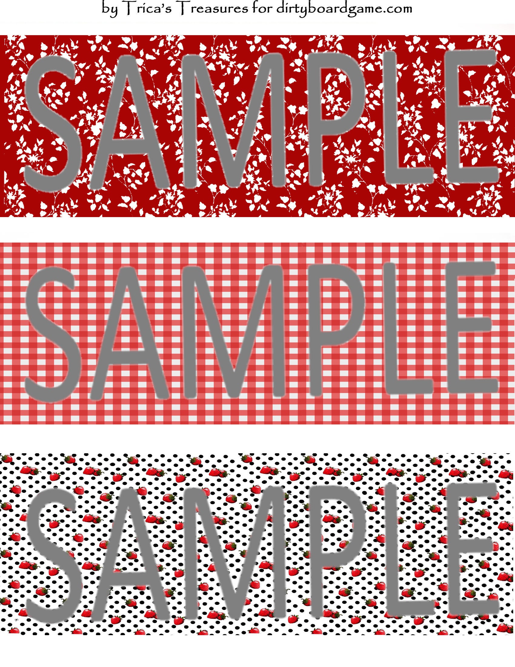 DirtyboardGame.com in collaboration with Trica's Treasures presents these choices of digital paper for making your own toppers. Download, print and cut. Attach the result to your favorite blank (or use heavy card stock) and create your own art for your toppers. Wear them, sell them, give them away - no restrictions.