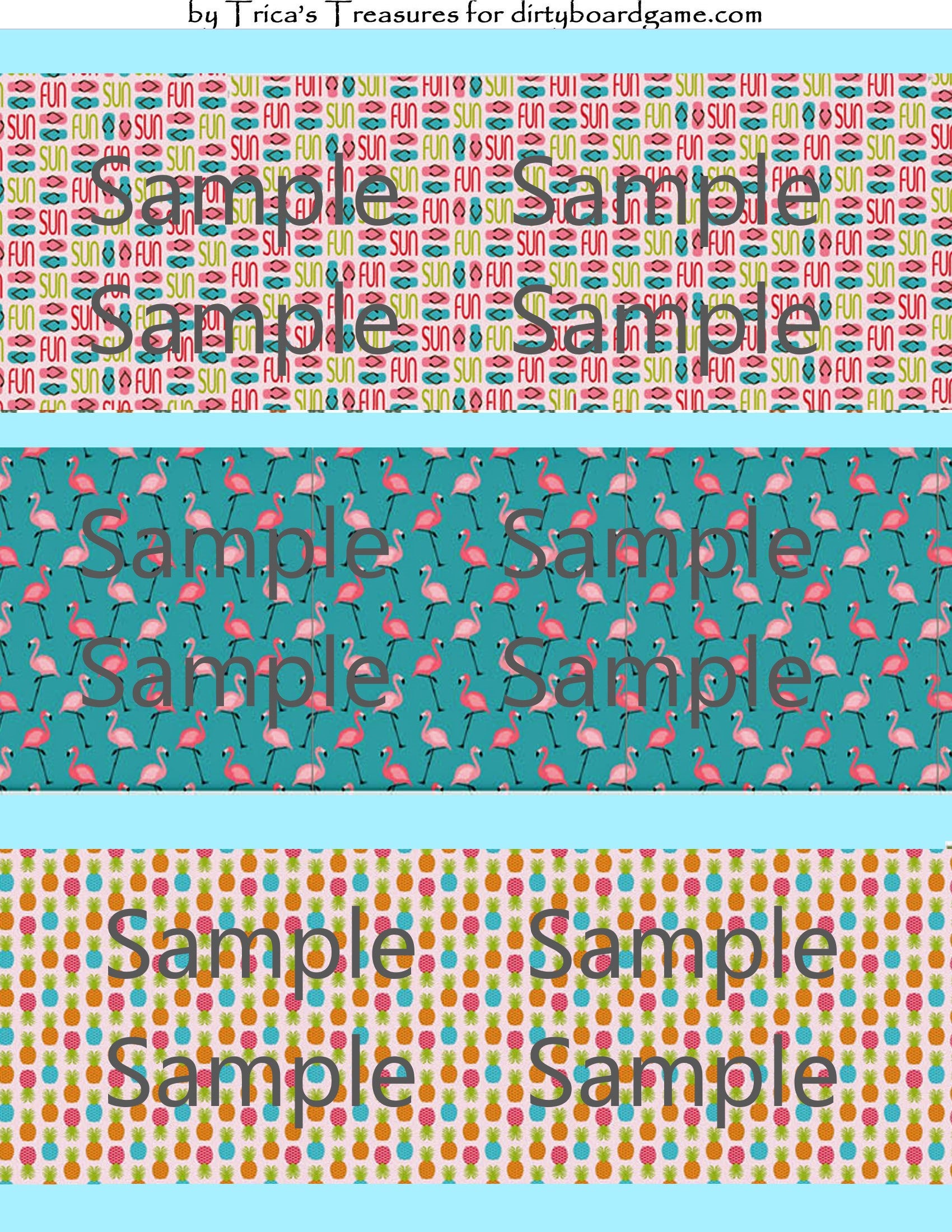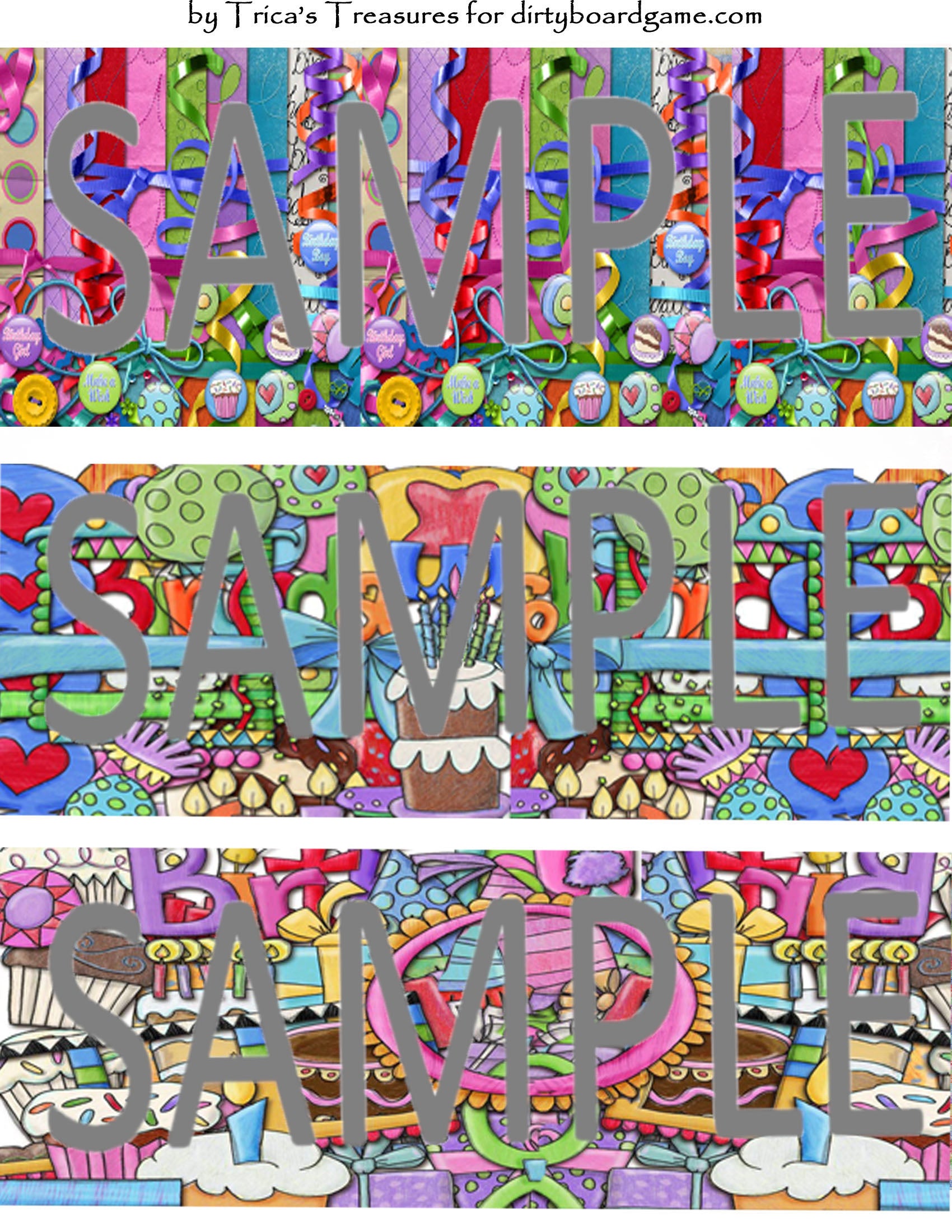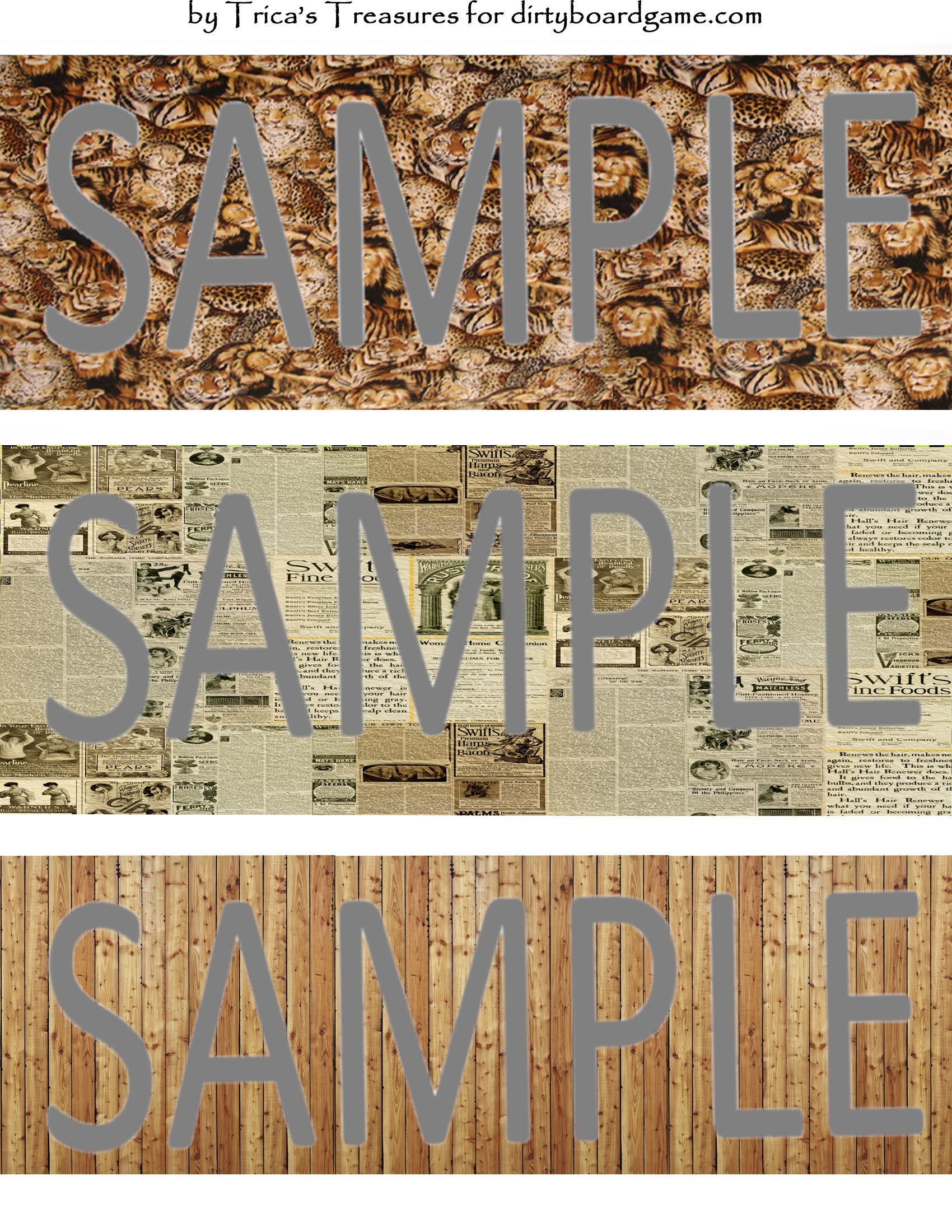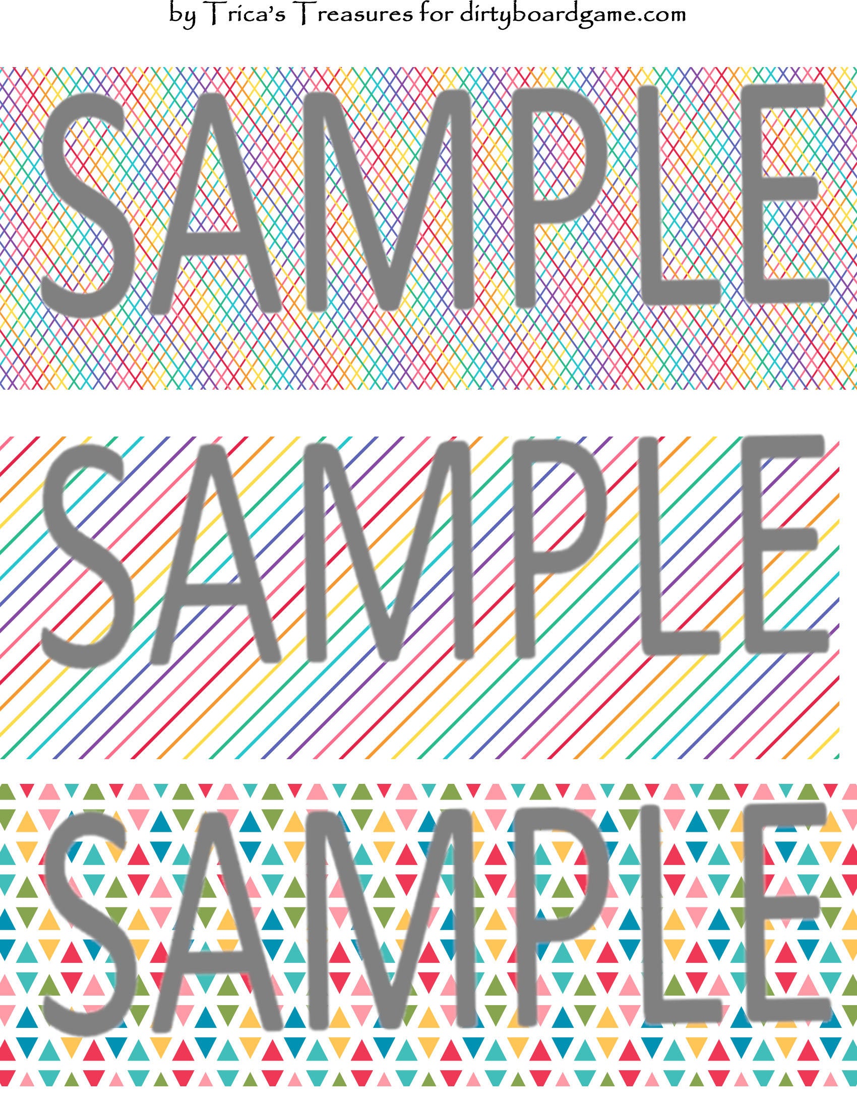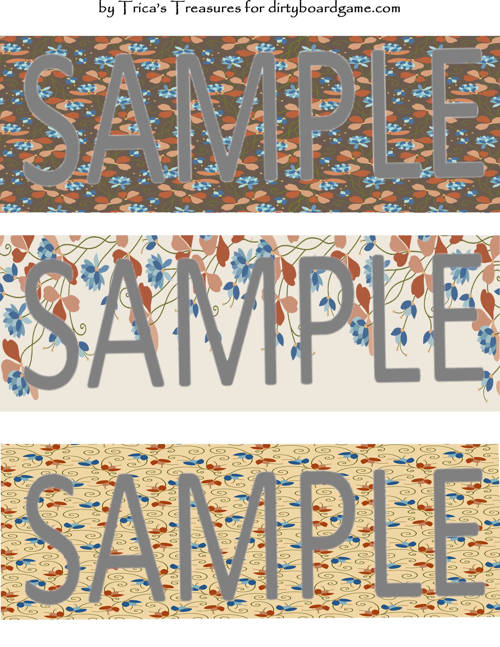 DirtyboardGame.com in collaboration with Trica's Treasures presents these choices of digital paper for making your own toppers. Download, print and cut. Attach the result to your favorite blank (or use heavy card stock) and create your own art for your toppers. Wear them, sell them, give them away - no restrictions.
