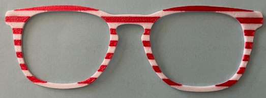 3d printed glasses toppers with magnets - printed in pebble finish. Pick the frame shape and your preferred stripe width.