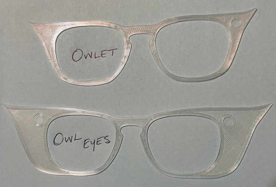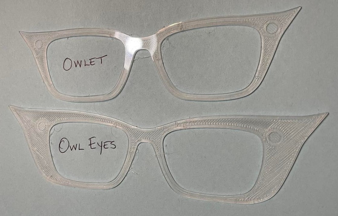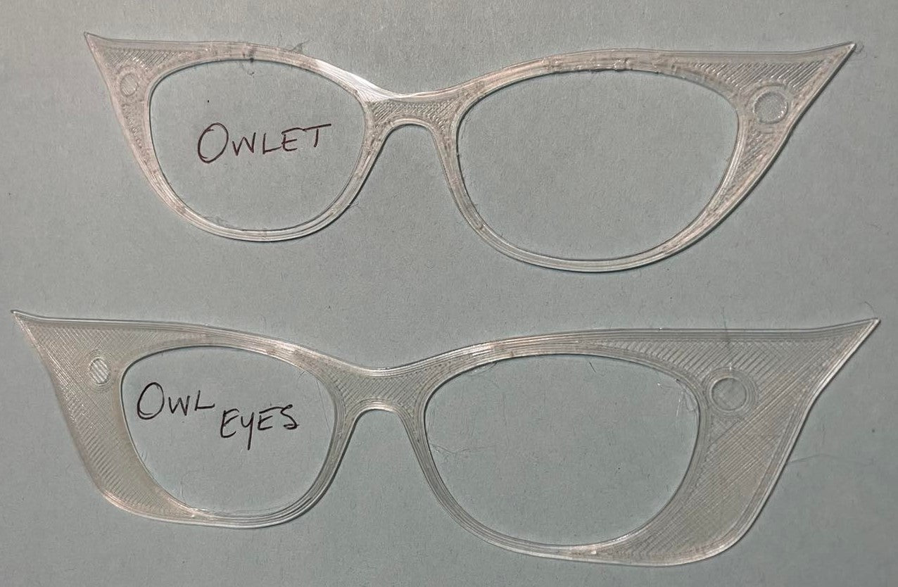 We took a few of the standard styles, then added a cool swoop. We refer to the swoop as an owl eye. We then made it a slight bit smaller and called it an owlet.